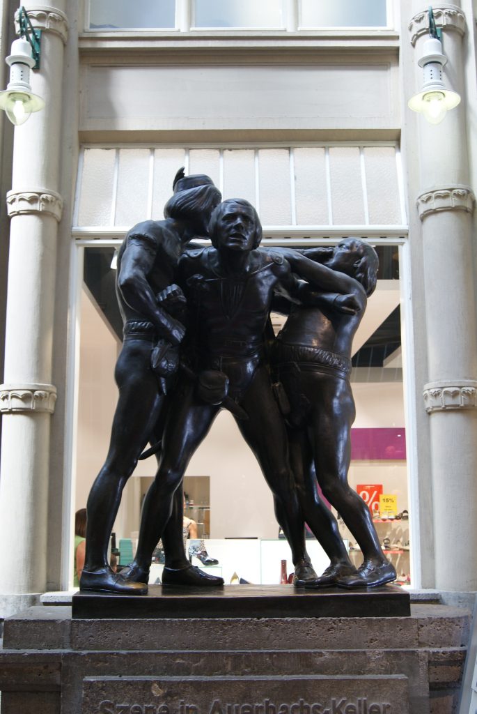 А в 1913 году скульптор Матье Молитор рядом с входом в Погреб создал композицию — в виде двух скульптурных групп запечатлен эпизод, в котором Мефистофель защищает себя силой колдовства от пьяных гуляк.