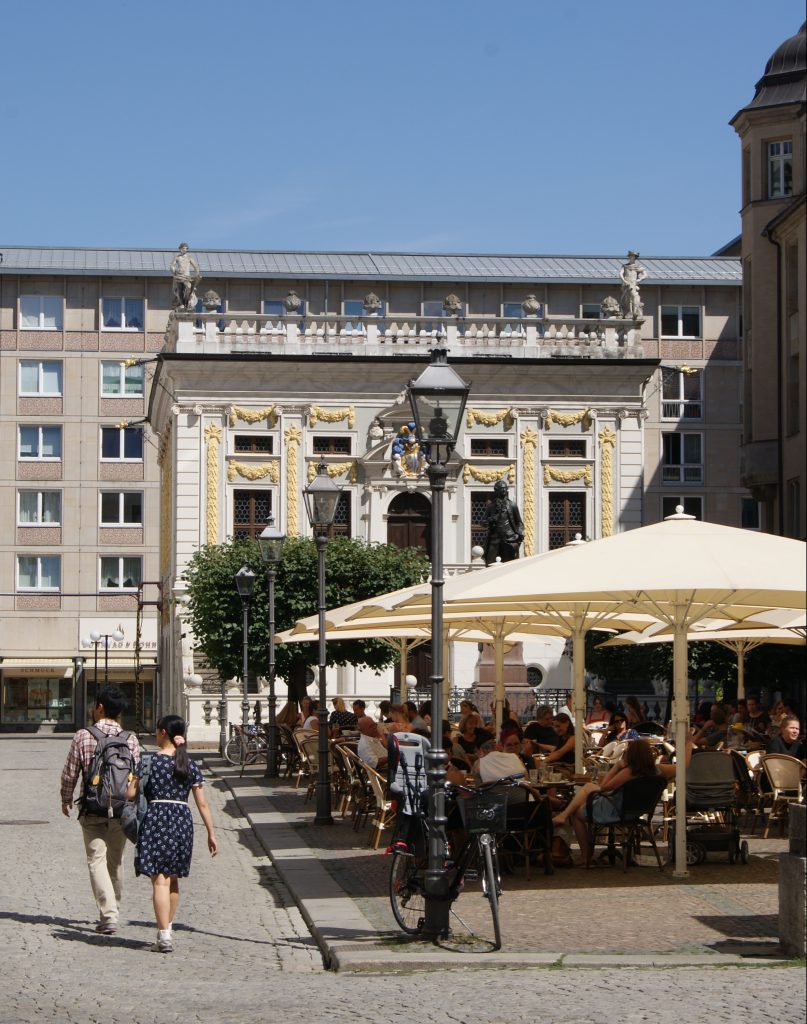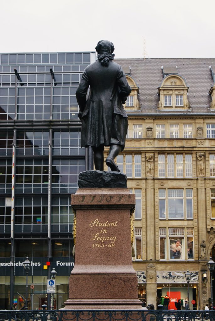 28 июня 1903 года в Лейпциге был установлен памятник Гете перед зданием старой биржи. Высота бронзовой статуи 2,62 метра, автор немецкий скульптора Шеффнер. Надпись на овальных медальонах постамента гласит: Иоганн Вольфганг Гете, студент в Лейпциге 1765-1768.