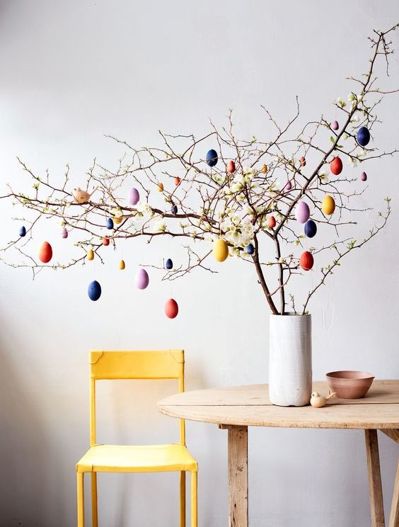У немцев есть обычай — к Пасхе украшать дерево разноцветными яйцами. Такое дерево называется Ostereierbaum. У кого есть свой дом с садом, то дерево наряжают прямо на улице, а у кого нет такой возможности, то в магазине можно купить ветки, а затем их украсить. Например, как на фото внизу.